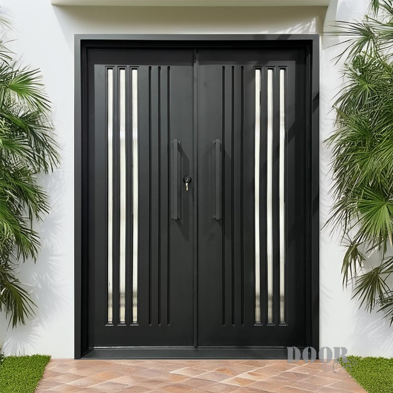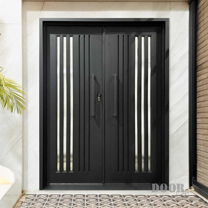 Decorative and customizable metal doors are in demand to make your space stylish and secure. These doors have reeded glass double panels that are highly adjustable with the dimensions of 72 x 96. Including handle, pre installed deadbolt, and sales tax.